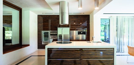 Oderwanie stanowiska przygotowywania posiłków od ściany i usytuowanie go w centrum sprawi, że kuchnia zyska na atrakcyjności. Efekt wzmocni dobrze zaplanowane światło.